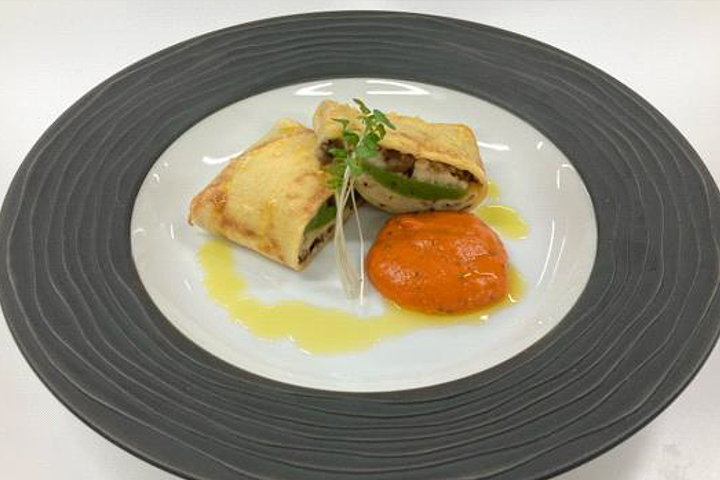 舌平目のムース クレープ包み風 ショロン風ソースを添えて